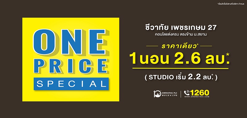 โปรโมชั่นพิเศษสุด ! One Price Special คอนโดแต่งครบ ตรงข้าม ม.สยาม Studio เริ่ม 2.2 ล้านบาท | 1 ห้องนอน เริ่ม 2.6 ล้านบาท*